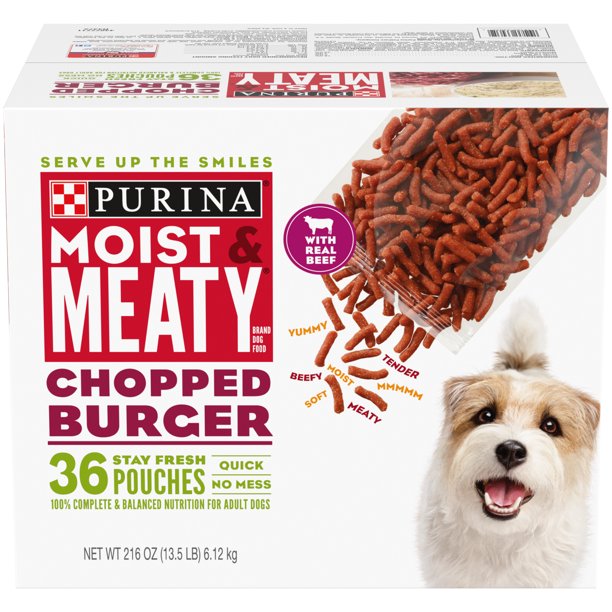 Purina Moist Meaty Wet Dog Food Chopped Burger 36 Ct Pouch Walmart Com